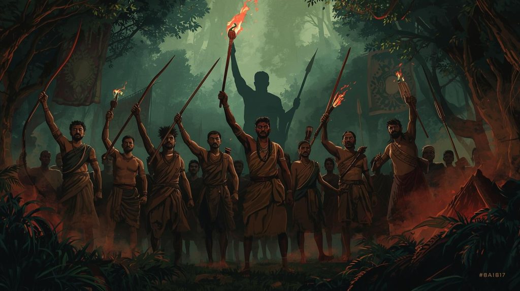 Birsa spent his childhood surrounded by lush forests, folk traditions, and tribal wisdom that valued freedom, dignity, and community harmony. However, he also grew up witnessing the growing oppression of British colonial rule, the forced occupation of ancestral land, and the exploitation of Adivasi families by landlords and missionaries. The painful reality of displacement, poverty, and social injustice left a deep mark on his young mind.